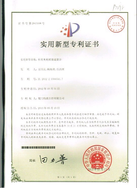 質(zhì)量專利證書(shū)